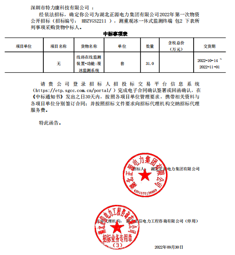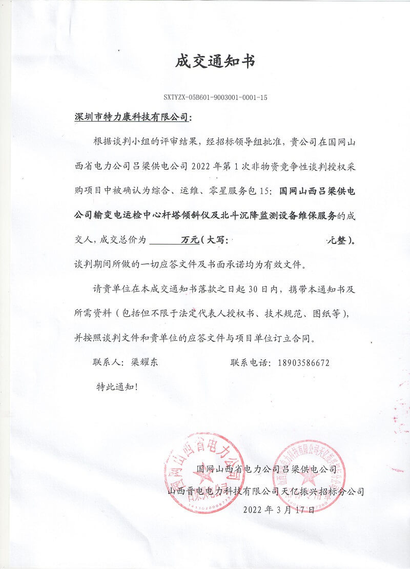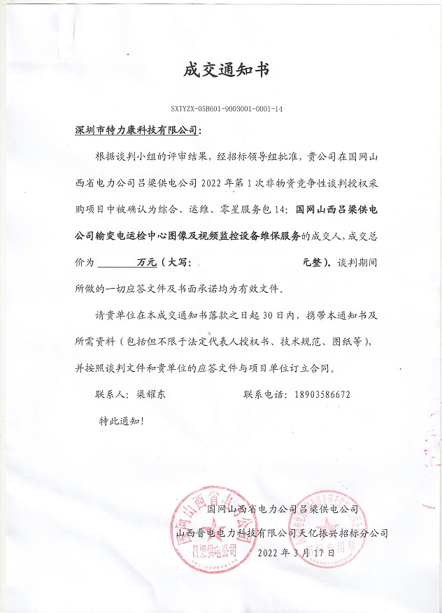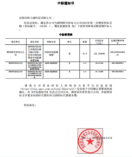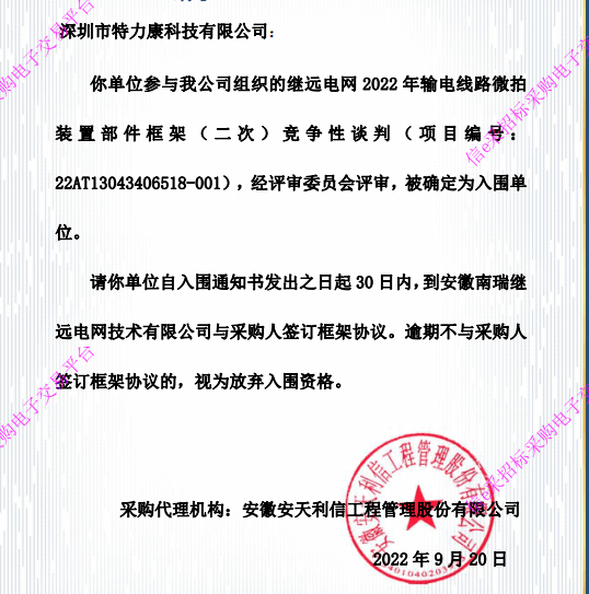 特力康中標(biāo)國網(wǎng)黑龍江送變電工程公司的2024年度第18次物資類競爭性談判采購項(xiàng)目——慶陽驅(qū)鳥器物資框 特力康中標(biāo)國網(wǎng)甘肅省電力公司省管產(chǎn)業(yè)單位2024年第五次物資競爭性談判授權(quán)采購項(xiàng)目 中標(biāo)喜訊:深圳市特力康科技有限公司成功入圍許繼集團(tuán)綜合能源公司輸電線路視頻在線監(jiān)測裝置模塊集采項(xiàng)目 中標(biāo)喜訊:特力康成功中標(biāo)國網(wǎng)重慶市電力公司渝中一片區(qū)項(xiàng)目 特力康成功中標(biāo)國網(wǎng)天津市電力公司2024年第二次?物?資招標(biāo)項(xiàng)目 特力康中標(biāo)國網(wǎng)安徽省電力有限公司蕪湖供電公司2024年3月非物質(zhì)采購項(xiàng)目 特力康輸電線路智能AI多目監(jiān)控裝置+傾斜監(jiān)測守護(hù)山西輸電生命線 鄂網(wǎng)“全景眼”:特力康一體化視頻監(jiān)控系統(tǒng)守護(hù)輸電線路 山東電網(wǎng) “穩(wěn)塔哨兵”:特力康智能桿塔傾斜監(jiān)測預(yù)警裝置筑牢電力桿塔安全防線 特力康科技輸電線路高清圖像監(jiān)控裝置,為河南輸電通道筑牢安全屏障 黃土高原護(hù)塔穩(wěn):特力康傾斜監(jiān)測裝置為山西電網(wǎng)筑牢根基 黔山冰防線:特力康 “數(shù)據(jù) + 圖像” 雙監(jiān)測守護(hù)貴州輸電線路 戈壁林區(qū)的 “火情哨兵”:特力康紅外熱成像裝置守護(hù)甘肅輸電線路 內(nèi)蒙電網(wǎng)裝上 “舞動監(jiān)測眼”:特力康輸電線路防舞動監(jiān)測系統(tǒng)守護(hù)線路安全 寧夏配電線路安裝了我司防外破電子化智能警示牌