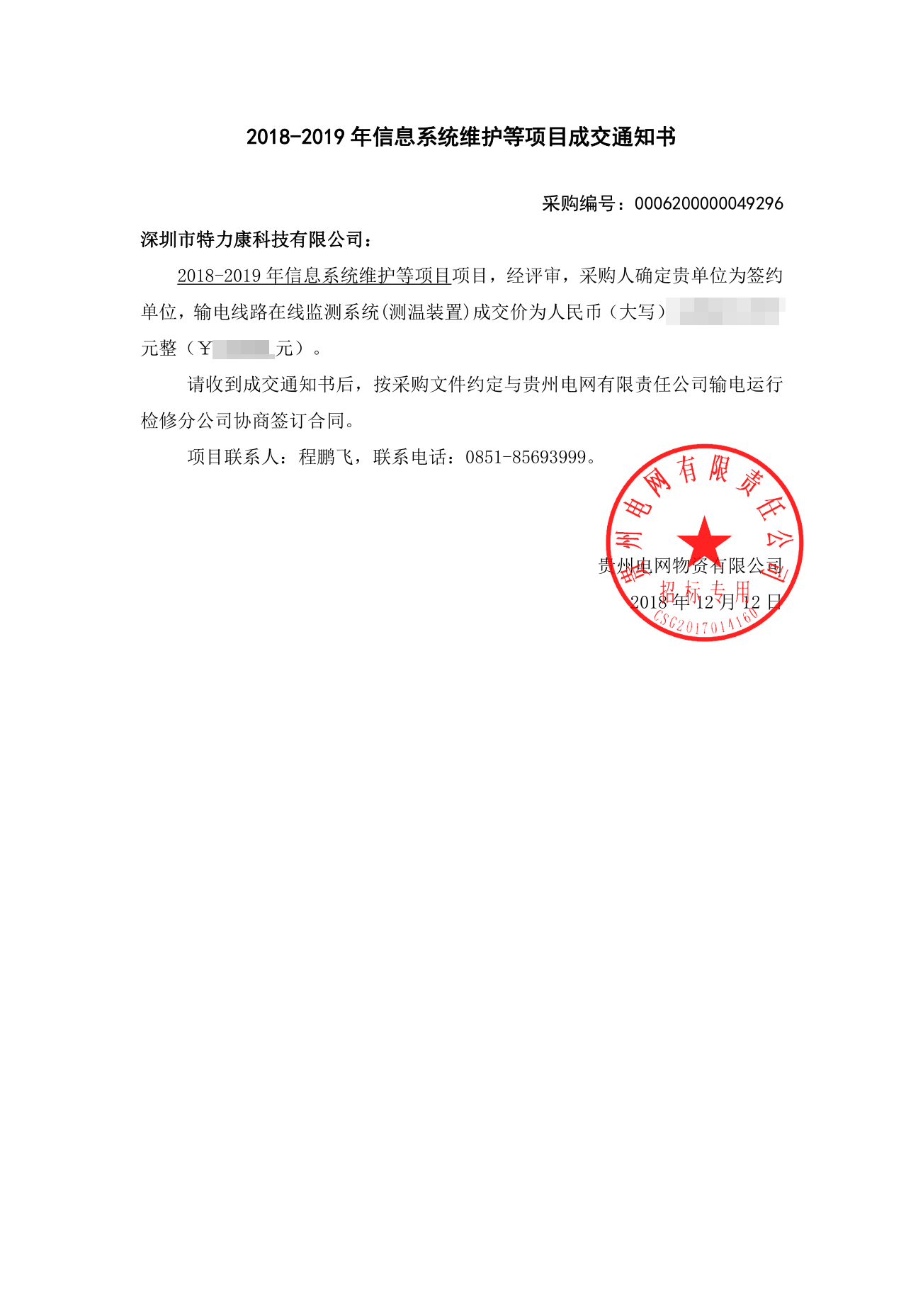 我司中標(biāo)貴州省電力公司2018-2019信息系統(tǒng)維護(hù)項(xiàng)目